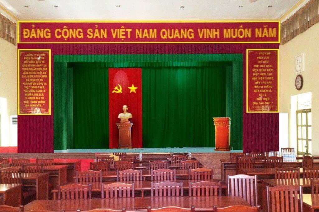 Thành phần của ban khánh tiết đa dạng, thường bao gồm bàn khánh tiết, ghế khánh tiết và thảm trải sàn. Ba yếu tố này không chỉ tạo nên không gian trang trọng mà còn giúp nâng cao chất lượng của sự kiện. Để không gian thêm phần ý nghĩa, phông nền và biểu tượng cờ Đảng, cờ Tổ quốc cũng được chú trọng.