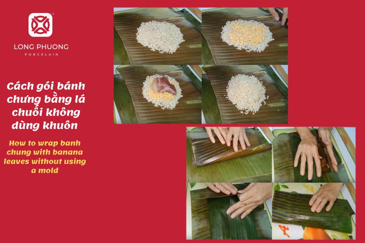 Những chiếc lá dong cũng rất quan trọng để tạo hình bánh. Bạn cần chọn lá dày, không bị rách và rửa sạch. Khi gói, bạn hãy nhớ gập đôi lá theo chiều dọc, sau đó tiếp tục gập thành hình chữ thập. Chính sự tỉ mỉ trong cách gói này sẽ giúp bánh chưng giữ được hình dáng đẹp và hương vị trọn vẹn.