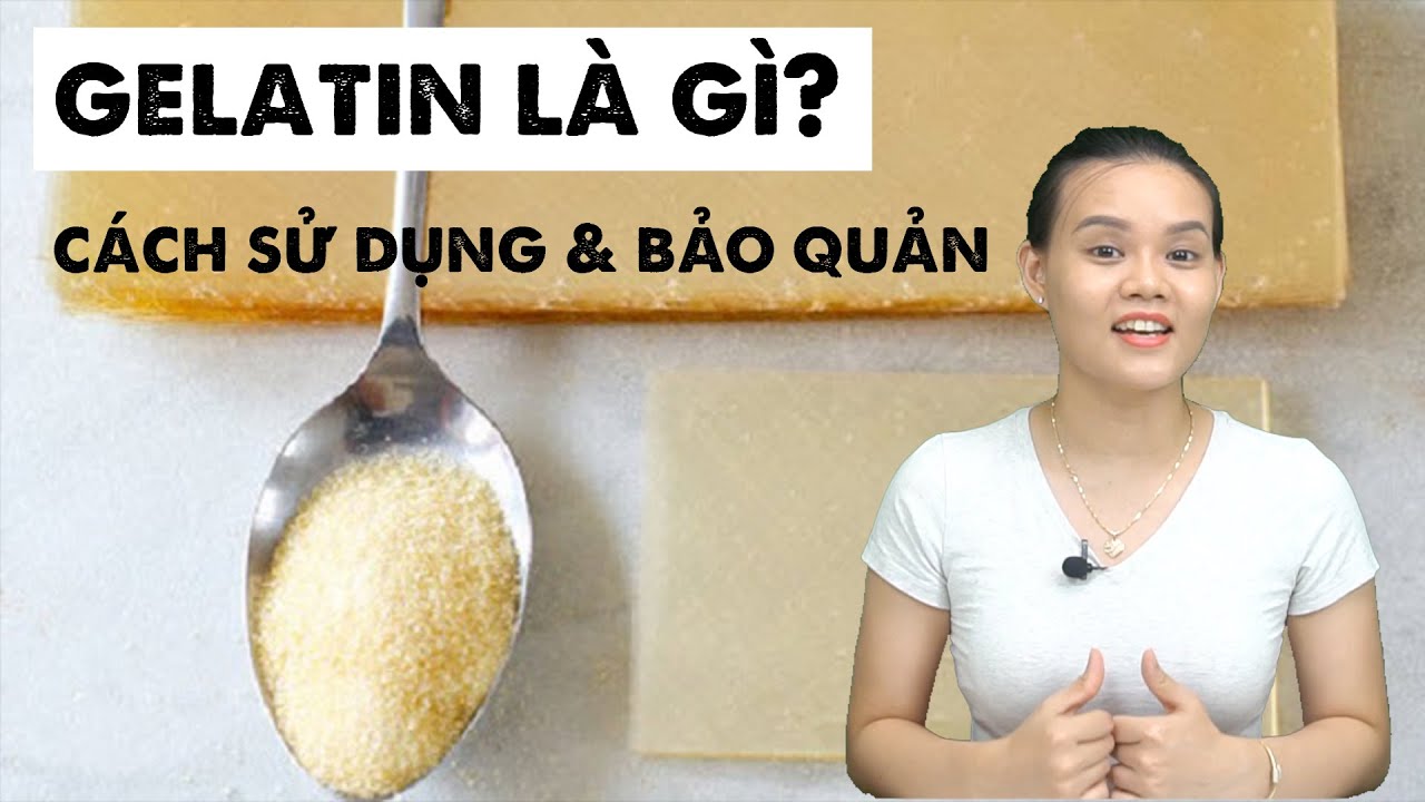 Về bột gelatin dạng lá, hãy ngâm lá trong nước lạnh khoảng 10 phút để chúng mềm hơn. Lưu ý rằng tỉ lệ nước cần gấp 5 lần lượng lá gelatin. Sau khi ngâm, bạn nên vớt lá ra và bóp nhẹ để ráo nước. Gelatin có khả năng làm đông thực phẩm và giúp kết dính các nguyên liệu, rất hữu ích trong việc làm bánh.