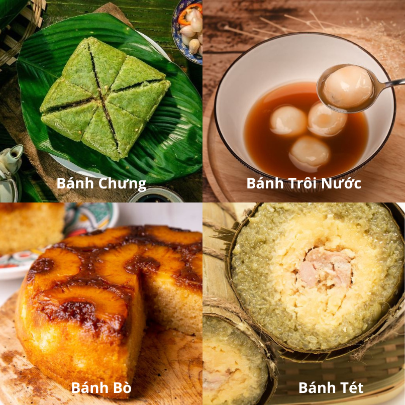 Việt Nam nổi tiếng với nhiều loại bánh truyền thống, mỗi món đều mang một hương vị đặc trưng và câu chuyện riêng. Trong số đó, bánh chưng và bánh tét thường xuất hiện trong dịp Tết Nguyên Đán, thể hiện tấm lòng của người dân dành cho ông bà tổ tiên. Bánh chưng vuông vắn với nhân đậu xanh, thịt mỡ, còn bánh tét thì dài và hình trụ, mang hương vị gạo nếp thơm ngon.