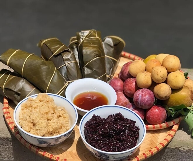 Tùy thuộc vào từng địa phương, mâm cỗ cúng Tết Đoan Ngọ có thể khác nhau nhưng luôn có sự hiện diện của rượu nếp và trái cây chua. Từ những bánh men nhỏ được giã mịn, người làm sẽ rắc lên cơm nếp đã nấu chín, tạo nên món ngon dân dã, mang ý nghĩa sâu sắc trong văn hóa ẩm thực Việt Nam.