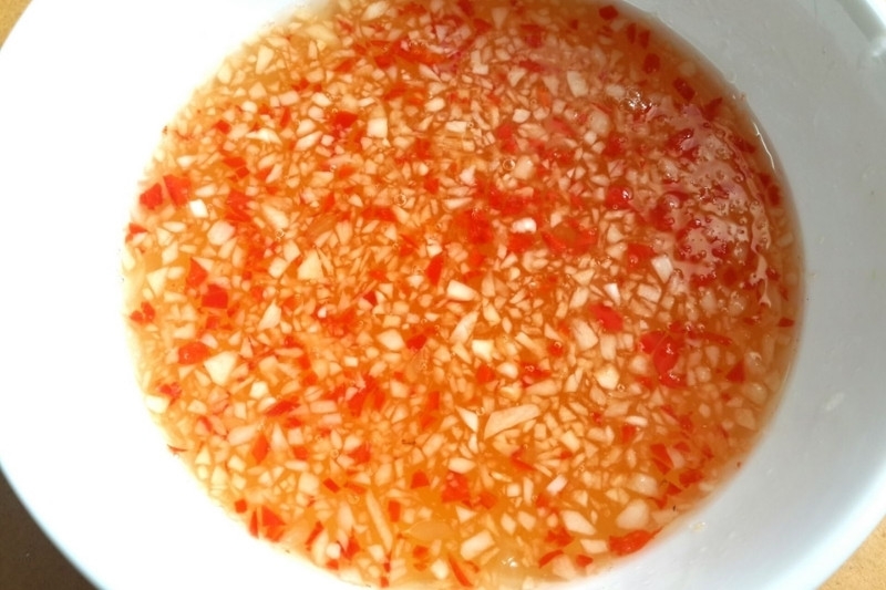 Sau khi tan đường, hãy thêm tỏi và ớt băm vào, đây là bí quyết giúp tăng thêm hương vị đậm đà cho nước chấm. Tỏi và ớt tươi không chỉ mang lại mùi thơm hấp dẫn, mà còn làm cho bát nước chấm trở nên bắt mắt hơn. Lưu ý rằng bạn có thể điều chỉnh tỷ lệ giữa các vị mặn, ngọt, chua, cay sao cho hài hòa, phù hợp với khẩu vị của gia đình mình.