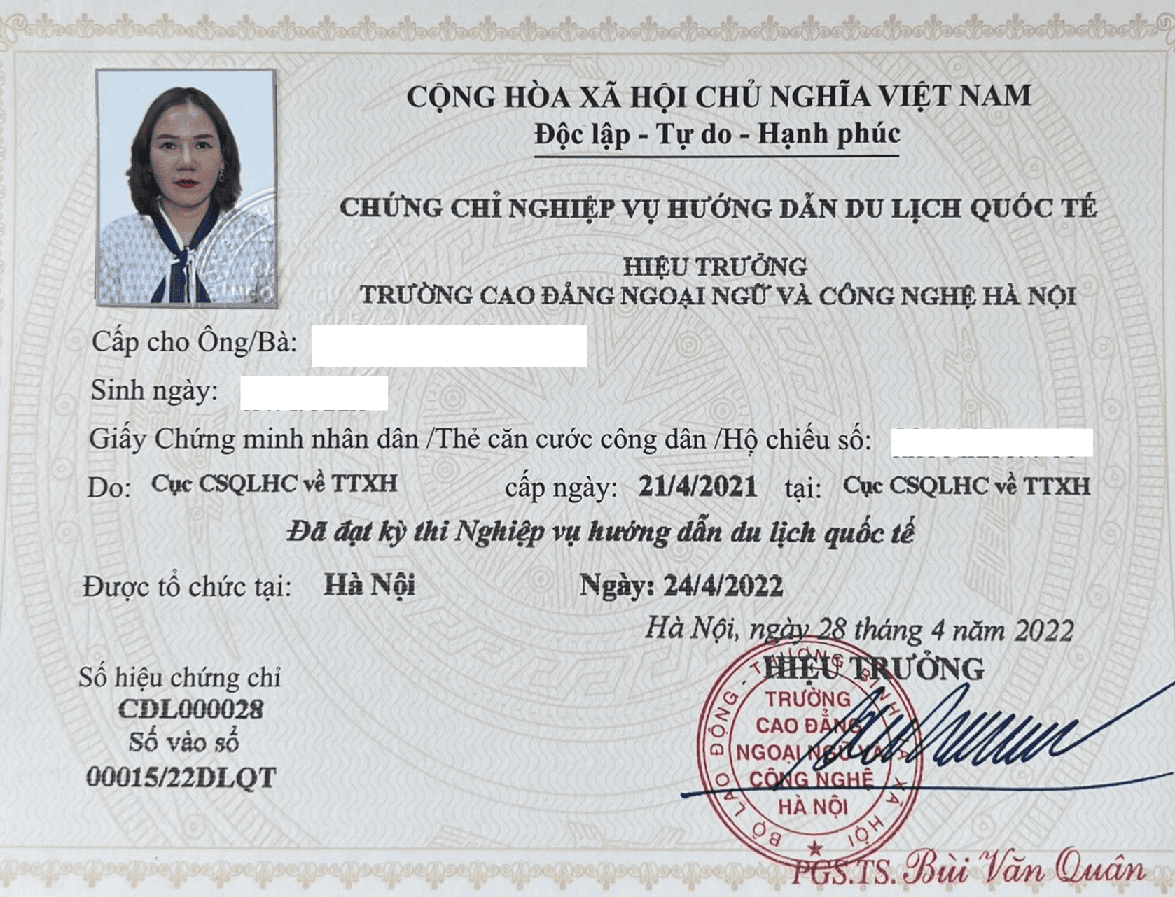 Quy trình rất đơn giản, bạn chỉ cần nộp hồ sơ đến Sở Du lịch hoặc Sở Văn hóa, Thể thao và Du lịch trong vòng 15 ngày. Chứng chỉ này không chỉ là “tấm vé thông hành” giúp bạn ứng tuyển vào nhiều công việc trong ngành du lịch mà còn cho phép bạn điều hành các tour cho cả khách quốc tế và khách Việt Nam.