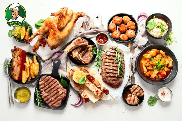 Món khai vị thường được bắt đầu với những lựa chọn thú vị như Greek salad tươi mát hoặc súp kem nấm béo ngậy, giúp kích thích vị giác ngay từ đầu. Tiếp theo là món chính đa dạng, từ bò xiên nướng, gà xiên nướng đến những món hải sản như tôm nướng hay cá hồi áp chảo, mang lại sự phong phú cho bữa ăn.