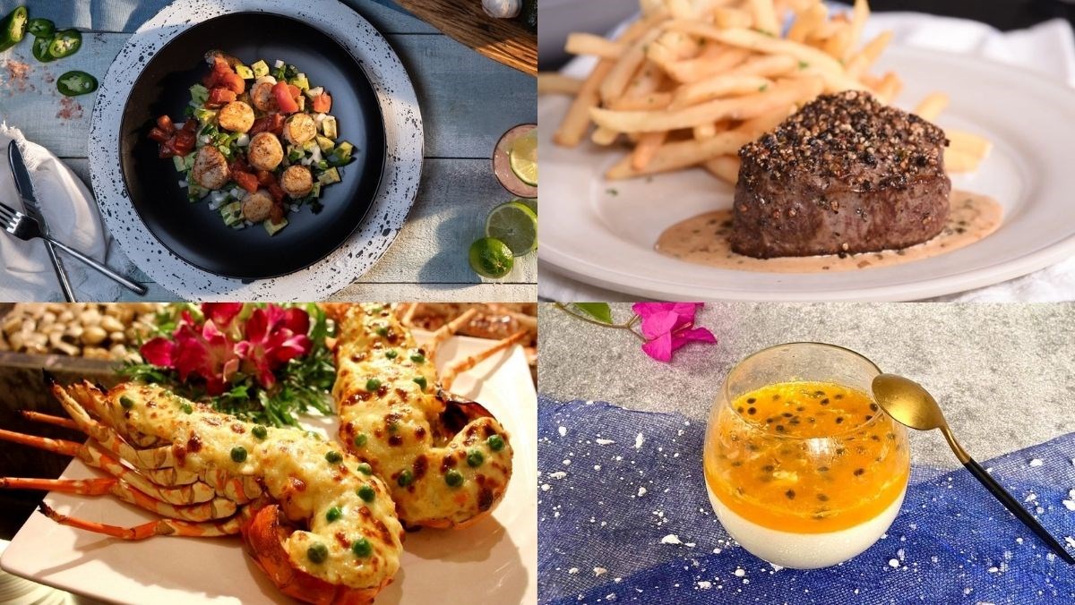 Tiếp theo, món chính sẽ là điểm nhấn với những lựa chọn phong phú như bít tết, cá hồi áp chảo sốt tiêu xanh, hay tôm, cua cùng các món ăn kèm sang trọng như cơm chiên hải sản XO hay khoai tây nghiền bơ tỏi. Mỗi món ăn được chế biến cầu kỳ, không chỉ bắt mắt mà còn đầy hương vị, tạo nên trải nghiệm ẩm thực đáng nhớ cho thực khách.