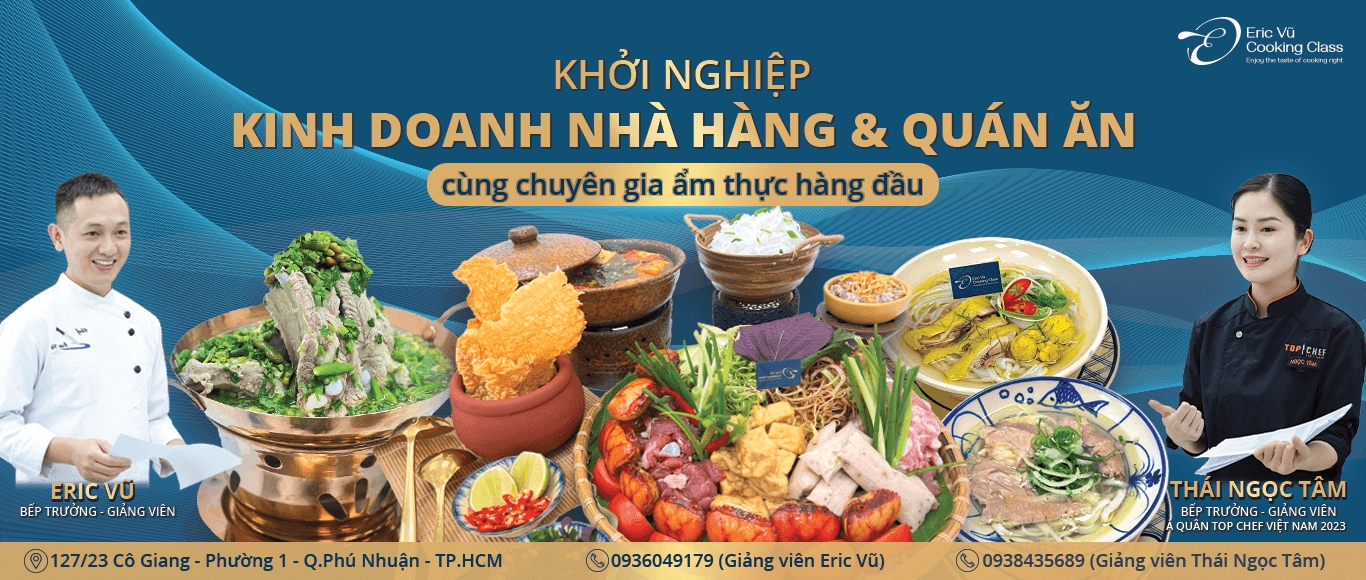 Học nấu ăn để kinh doanh không chỉ đơn thuần là học công thức mà còn là hành trình khám phá đam mê và nâng cao kỹ năng. Tại Eric Vũ Cooking Class, bạn sẽ được hướng dẫn chi tiết về các kỹ thuật chế biến món ăn hấp dẫn như phở, bún hay lẩu nướng BBQ. Với hơn 40 năm kinh nghiệm, Cao Đẳng Nấu Ăn sẽ giúp bạn nắm vững bí quyết để tạo ra những món ăn ngon và hấp dẫn cho quán mình.
