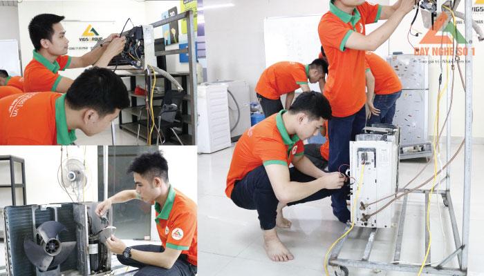Khóa học không chỉ cung cấp kiến thức chuyên môn về sửa chữa điều hòa mà còn bao gồm cả sửa chữa các thiết bị điện lạnh khác như máy giặt, tủ lạnh, và bình nóng lạnh. Thời gian đào tạo chỉ từ 2 đến 3 năm, trong đó học viên sẽ thực hành thường xuyên để nắm vững kỹ năng.