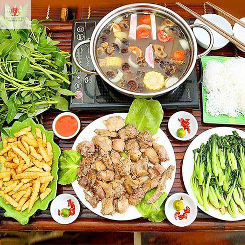 Lẩu dê là một món ăn đặc sản của vùng Ninh Bình, nổi bật với hương vị đặc trưng và sự kết hợp hoàn hảo của thịt dê tươi ngon. Một trong những điểm thú vị khi thưởng thức món lẩu này chính là các loại rau ăn kèm, giúp làm tiền và tăng thêm hương vị cho bữa ăn.