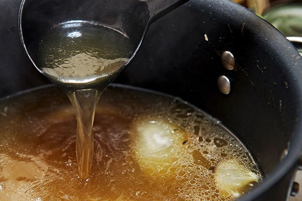 Bạn cũng có thể thêm gelatin vào nước dùng để giúp nó thêm độ ngọt và tạo độ sánh. Đun nước dùng ở nhiệt độ khoảng 50-60 độ, rồi khuấy đều với gelatin đã ngâm nở. Với những nguyên liệu từ bắp mỹ, cà rốt hay rong biển Kombu, nước dùng sẽ thơm ngon và đậm đà hơn.