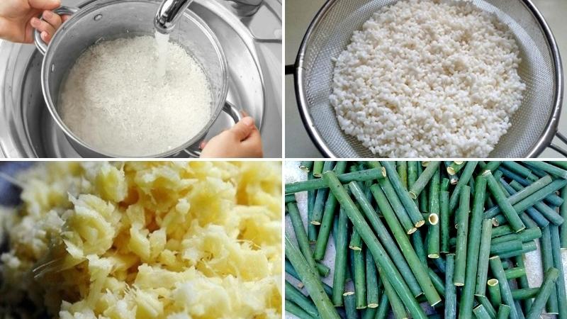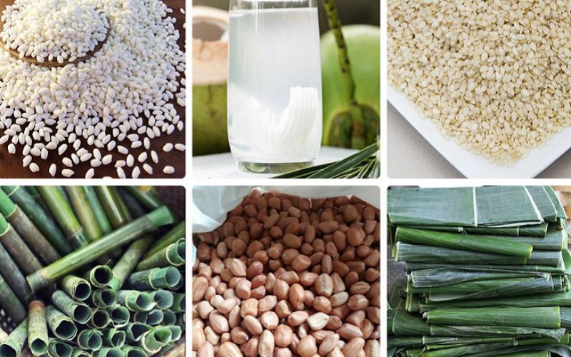 Tiếp theo, bạn cũng cần một củ gừng nhỏ, 200ml nước dừa tươi, 200g đậu phộng, 100g mè trắng và 2 muỗng canh muối tinh. Gừng không chỉ tạo thêm hương vị mà còn giúp cơm lam thêm ấm áp. Đặc biệt, nước dừa tươi giúp cơm mềm và thơm, mang lại vị ngọt tự nhiên cho món ăn.