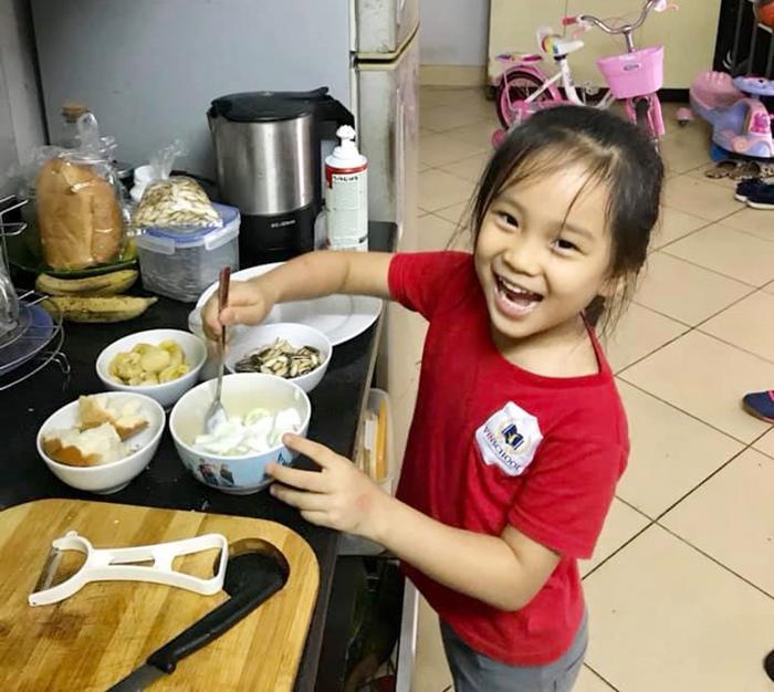 Chị cũng nhớ lần bé Na cùng ba tham gia cuộc thi làm bánh ngay tại nhà. Đó là một trải nghiệm tuyệt vời, nơi bé được tự do sáng tạo và trang trí chiếc bánh thật đẹp mắt. Qua những món ăn đơn giản, bé không chỉ học được cách nấu nướng mà còn rèn luyện kỹ năng sống, như trân trọng những món ăn mà mẹ đã vất vả chuẩn bị.